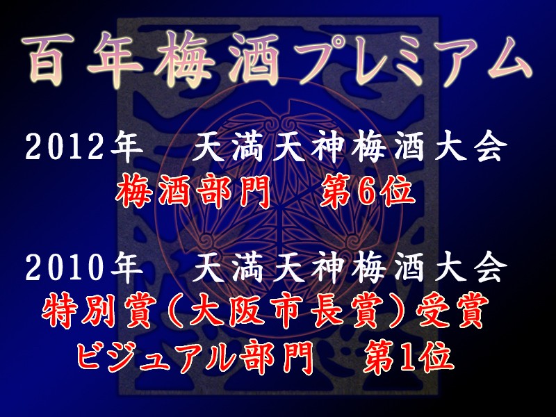 2008年天満天神梅酒大会で見事グランプリに輝いた「梅香 百年梅酒」のプレミアム・バージョンです。