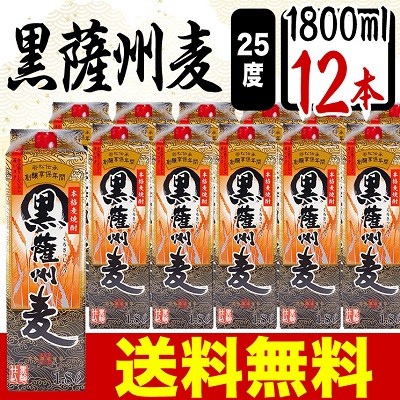 送料無料 麦焼酎 黒薩州麦 25度 1.8L パック 1800ml × 12本 ケース まとめ買い