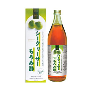 | 「シークヮーサーもろみ酢 900ml」は、良質の麹菌の発酵から生成されたもろみ酢です。泡盛を蒸留した後にできるもろみから生まれました。クエン酸を含んでいます。さらにシークワーサーを加えて飲みやすく仕上げています。 |