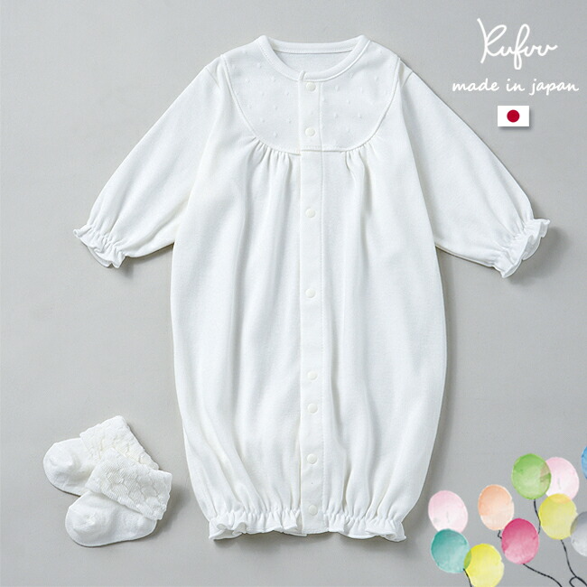 折り返し フリル靴下 チュール ヨーク 日本製 ドレス & 靴下 セット 綿 100% 男の子 女の子 シンプル 通年素材 2WAYオール お宮参り 退院 お披露目 新生児