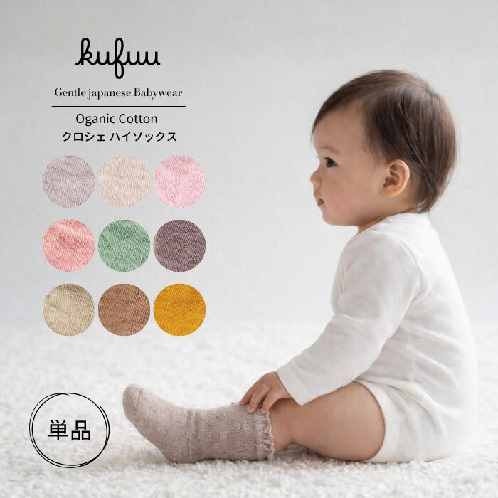 ベビー 靴下 【ハイ ソックス クロシェ編み かぎ編みソックス 単品】3足SET 9-12cm 日本製 オーガニック 新生児 女の子 春 夏 秋 冬 冷房対策 クフウ Kufuu