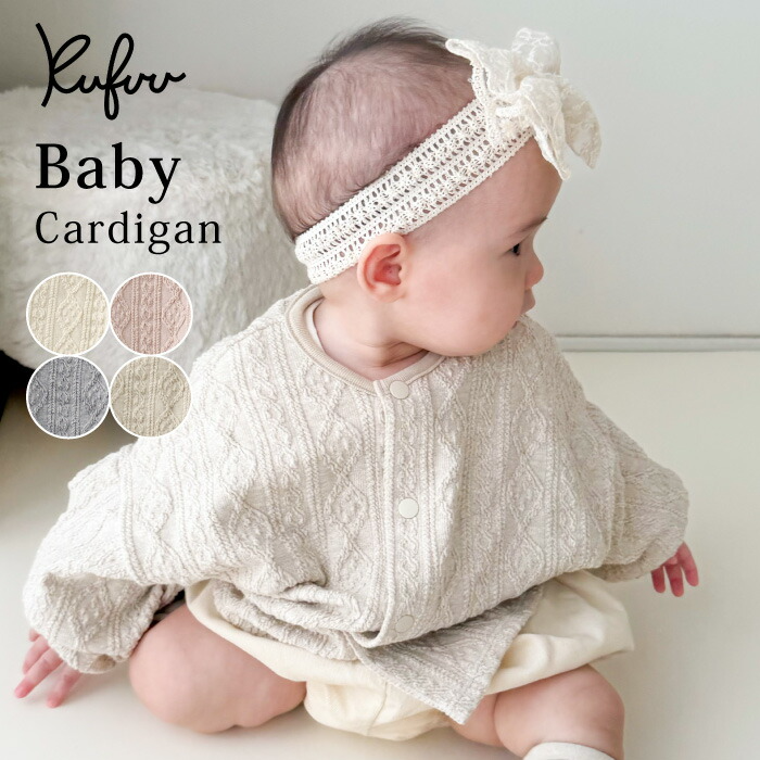 ベビー カーディガン ケーブル編み ドルマン風 日本製 80 90 温度調節 体温調節 はおり オールシーズン フリーサイズ クフウ Kufuu 女の子 男の子 ベビー服