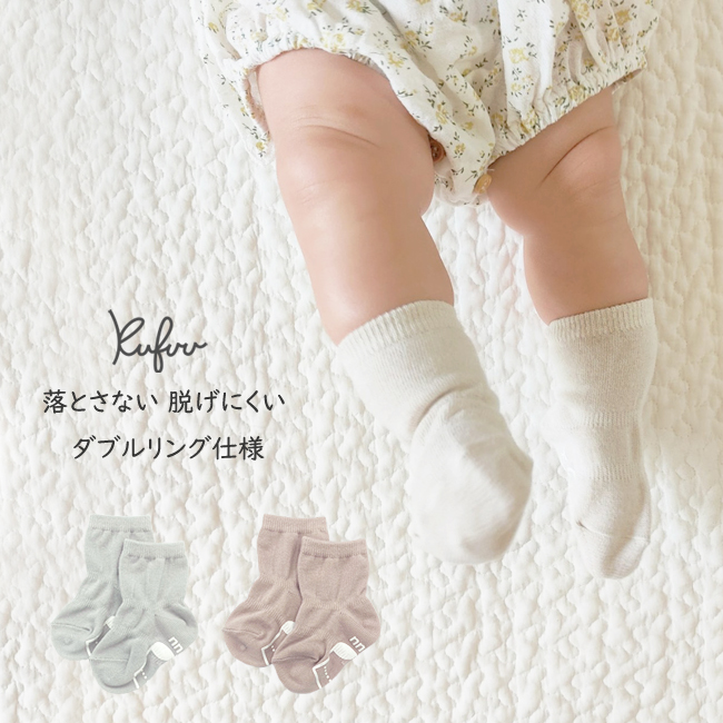 ベビー ソックス 靴下 脱げにくい 日本製 Wリング 9-12 cm 赤ちゃん 無地 靴下 シンプル クフウ Kufuu
