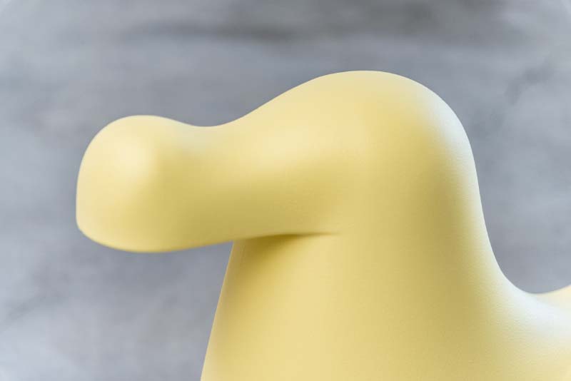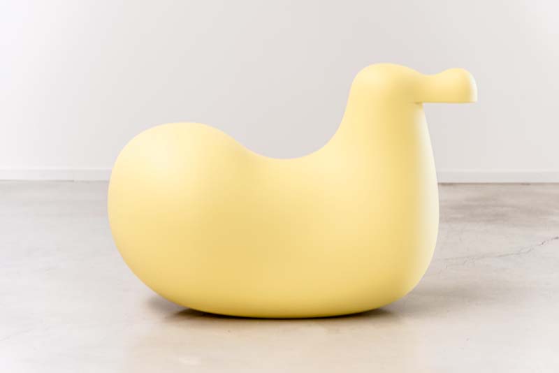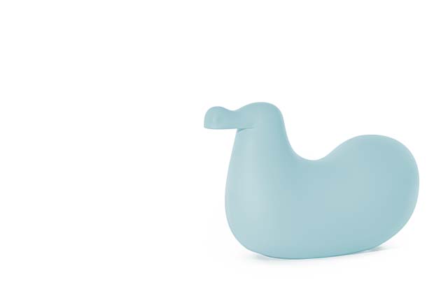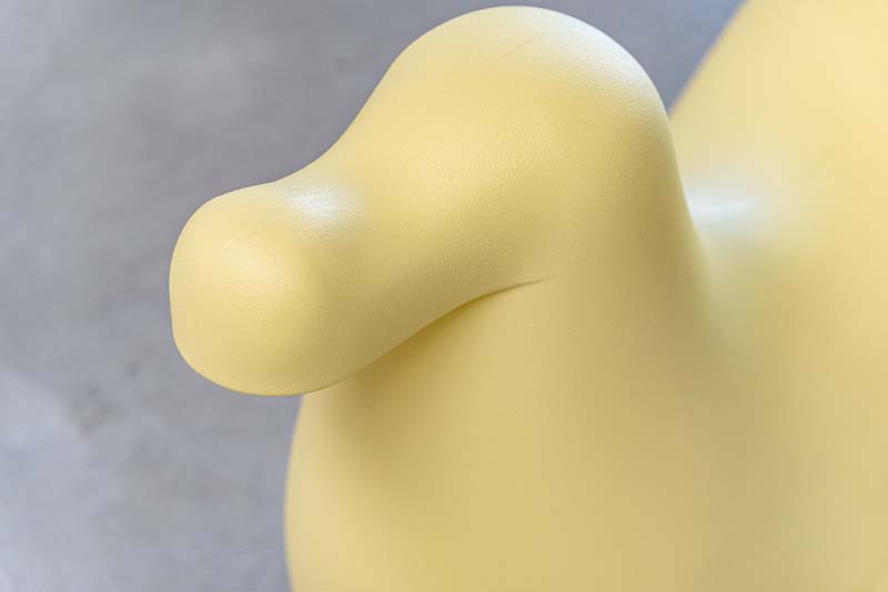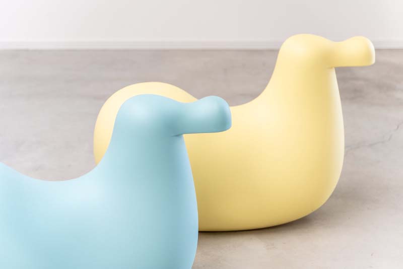 鳥をモチーフにした、丸みのあるフォルムとポップなカラーが印象的な、ロッキングチェア。