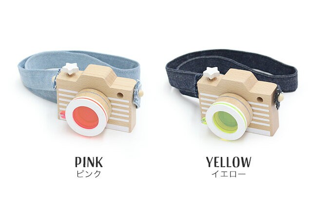 ストラップの色はカメラ本体のカラーレンズの色によって異なり、イエローは濃い色のデニム、ピンクは薄い色のデニムとなっています。