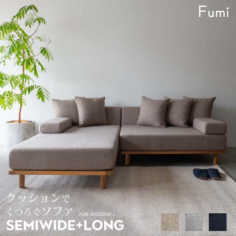 セミワイドとロングを組み合わせるとコンパクトなカウチソファになります。