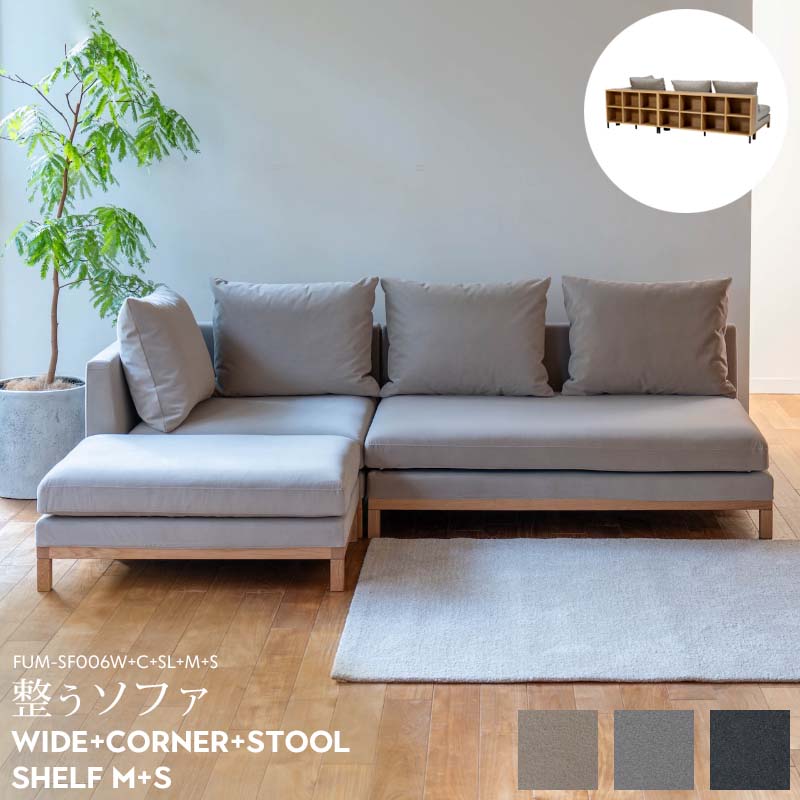 ※こちらはソファワイド+コーナー+スツールと棚M+Sセットの商品ページです。