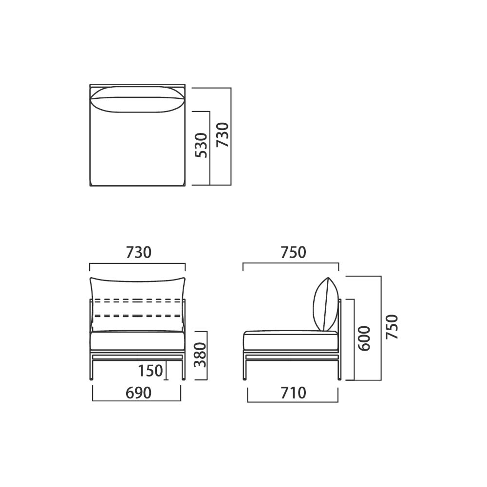 | サイズ | 一人掛け:幅73 × 奥行75 × 高さ75 座高38 cm |