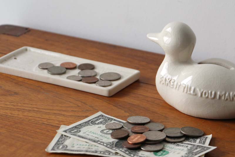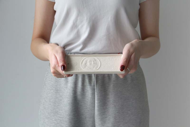 100ドル札をモチーフにしたトレイは、グラフィカルでありながら陶器ならではの温もりを感じさせるデザイン。