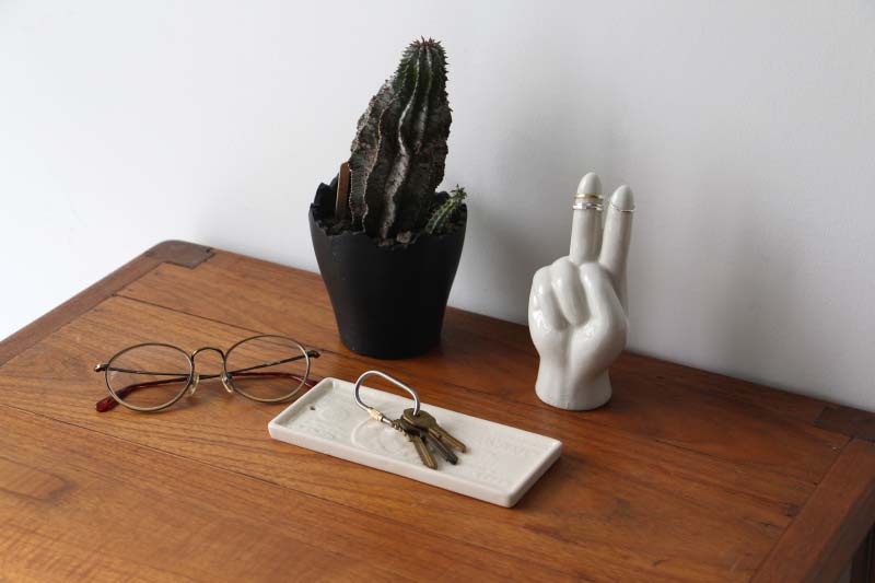 マネートレーとしてはもちろん、キーリング・ジュエリー・アクセサリー・メガネ置きなど、日常の小物を美しく受け止めるトレイとして活躍します。