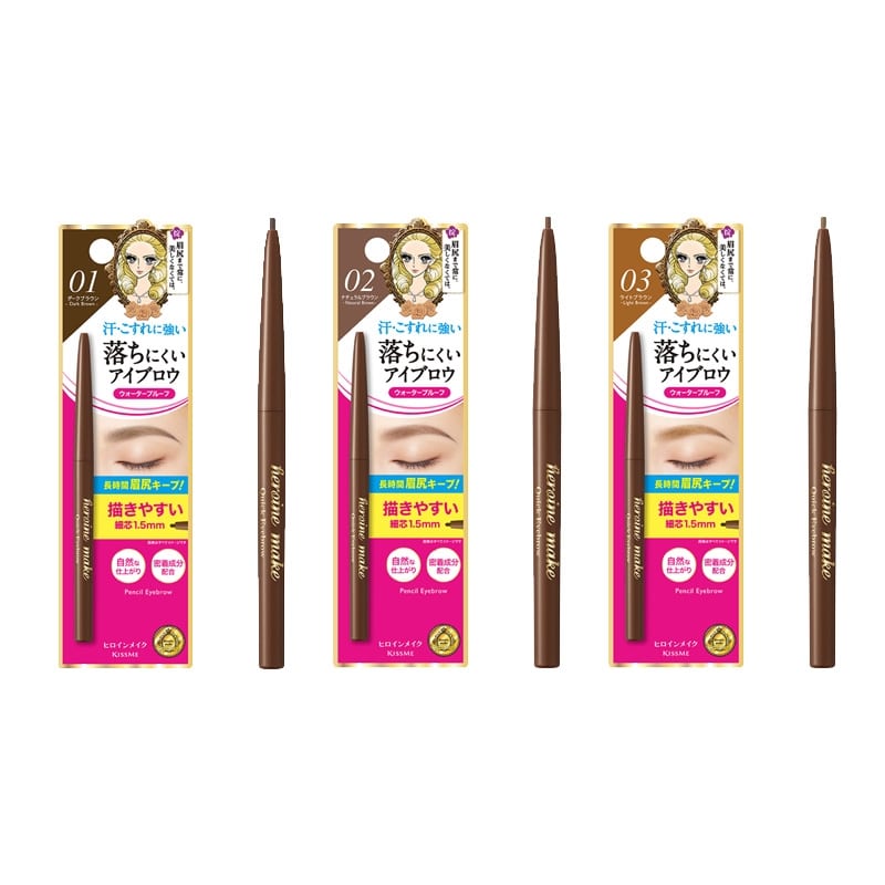 落ちにくいのに描きやすい!スルスル描ける1.5mm芯で自然な眉に仕上がる、繰り出し式のアイブロウペンシル。落ちないマスカラが人気の「ヒロインメイク」のアイテムだけあって、耐久性はバッチリ!ウォータープルーフで汗・水・こすれに強く、消えやすい眉尻もしっかりキープします。