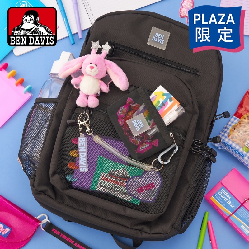 PLAZA限定!爽やかなブルーのロゴがアクセントになった「BEN DAVIS(ベン デイビス)」のバックパックです。収納力抜群のメインスペースのほか、フロントの多層ポケットやサイドポケットなどが充実していて機能性も抜群。取り外しができるラバーチャームや、カラビナ&スパイラルコード付きメッシュミニポーチなどの付属アイテムも高ポイントです。<br><br>【サイズ】<br>(本体)約 W33×H46×D20cm<br><br>【容量】30L<br><br>