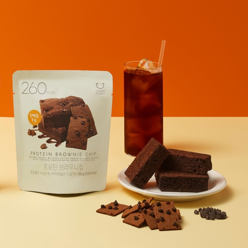 韓国を代表する人気ヘルス&ビューティストア「オリーブヤング」のプライベートブランド""ディライトプロジェクト""から、プロテイン入りのブラウニーチップスがラインアップ。薄焼きのブラウニーに、チョコチップがトッピング。サクサクの食感で止まらないおいしさです。