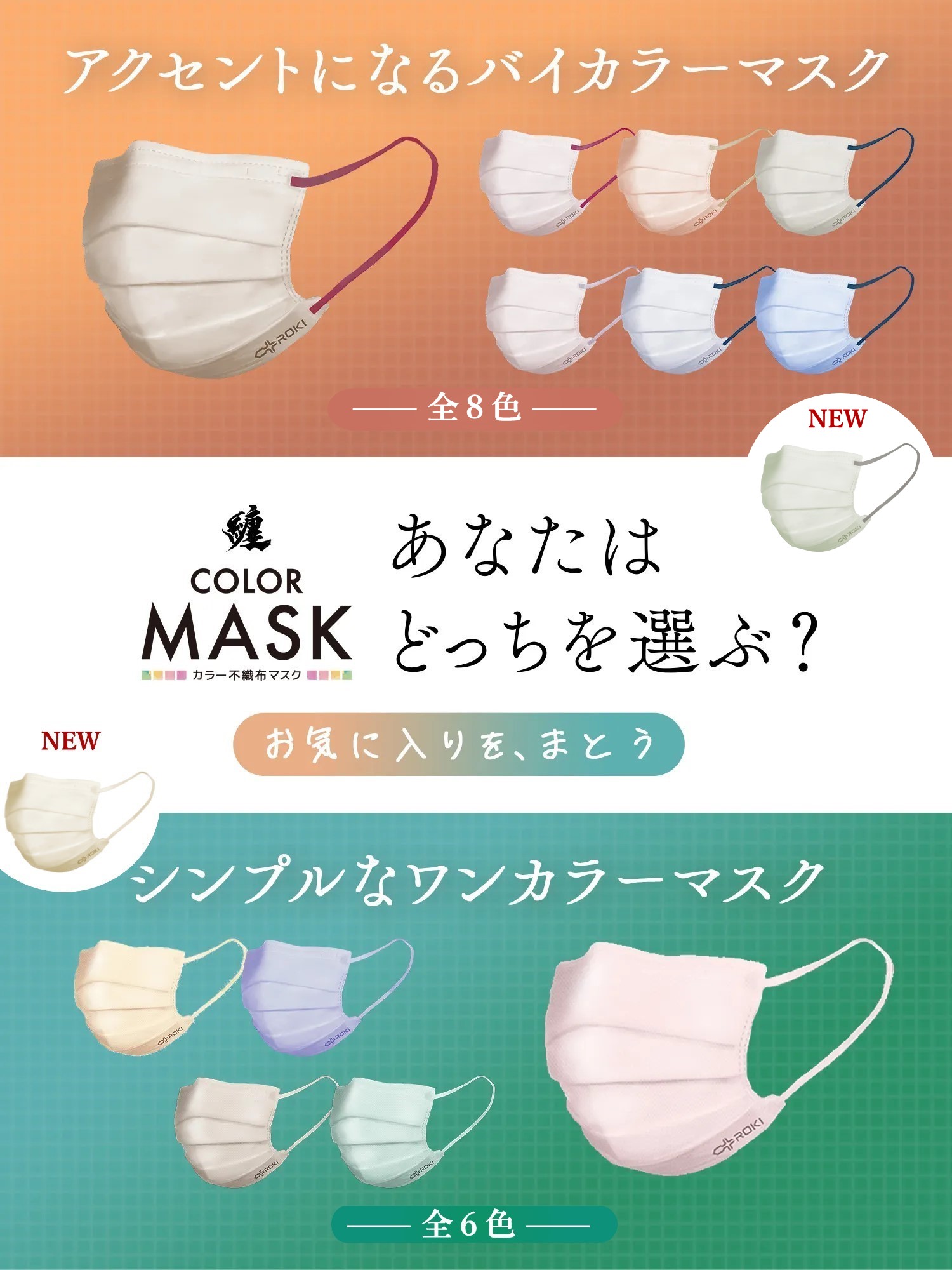 【最大P10% ~1/19 24時】マスク 不織布 日本製 バイカラー 7枚 ふつう/小さめ 個包装 公式 ROKI ロキ 纏 まとい