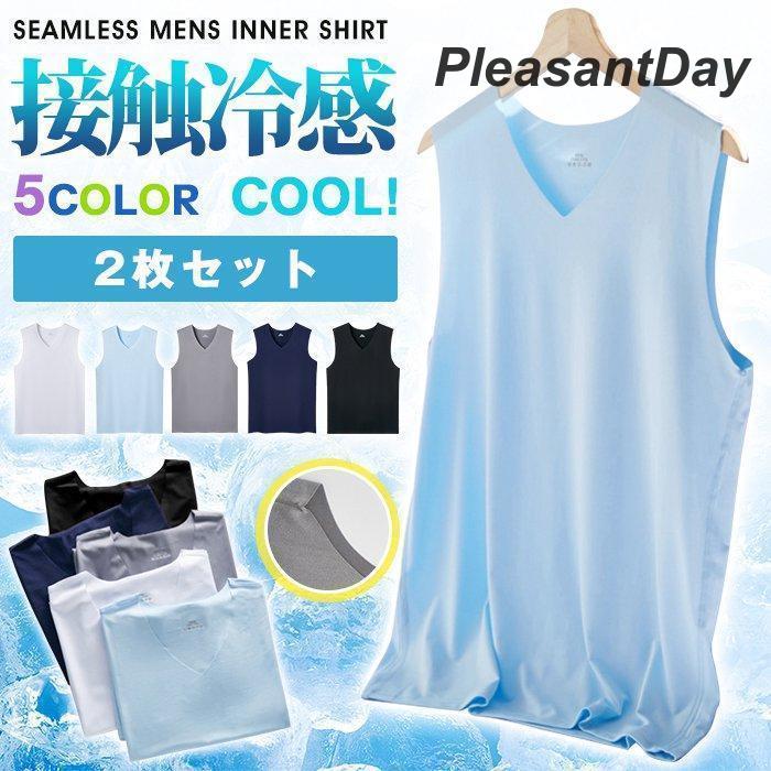 タンクトップ メンズ 接触冷感 汗取り 2枚セット インナー シームレス ノースリーブ Vネック インナーシャツ 肌着 下着 Tシャツ