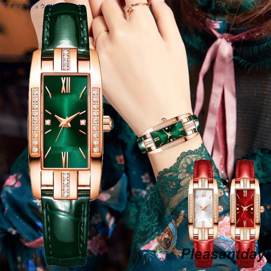 腕時計 レディース 3色 ラインストーン おしゃれ 大 かわいい プレゼント 20代 30代 40代 可愛い 華奢 彼女 妻 奥様 上品 仕事用 お祝い用 ギフト サプライズ 記念日 お誕生日 グリーン レッド ゴールド スタイリッシュ シンプル お返し ホワイトデー おすすめ