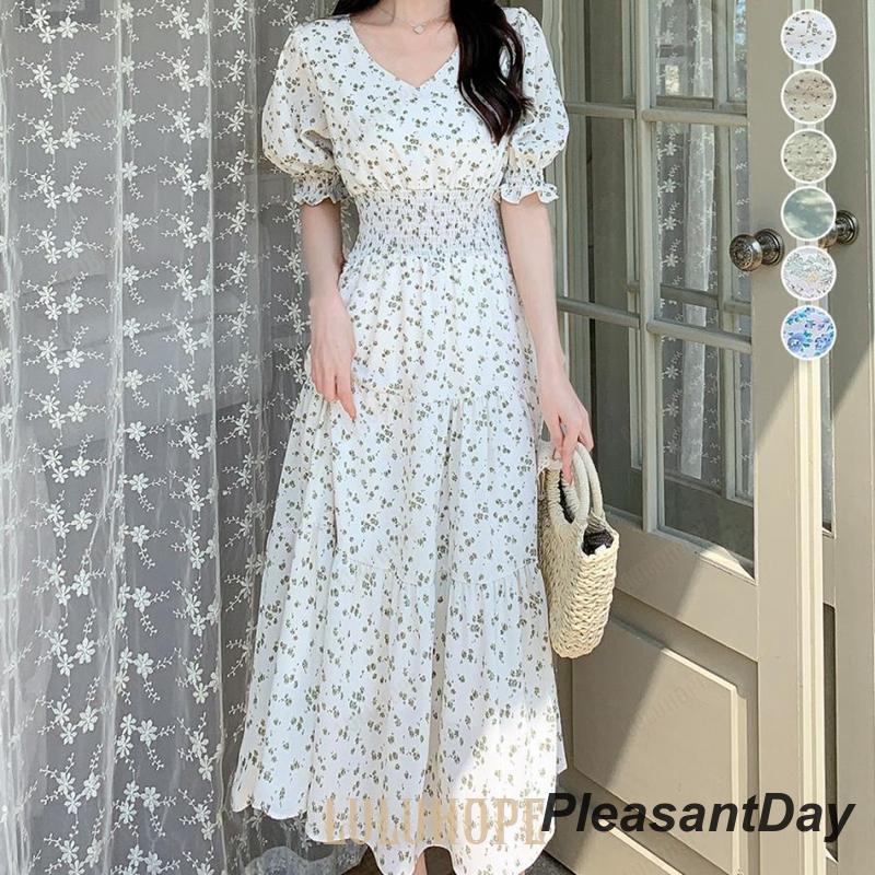 ワンピース レディース 半袖 春夏 Vネック Aライン 水着の上に着る服 きれいめ おしゃれ 花柄 薄手 透け感 パフスリーブ 白