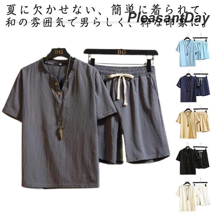 甚平 じんべい 大きいサイズ 浴衣 メンズ セット 寝巻き 甚平 シャツ 短パン 綿麻 ゆかた 和服 寝巻き 部屋着 セットアップ パジャマ 涼しい