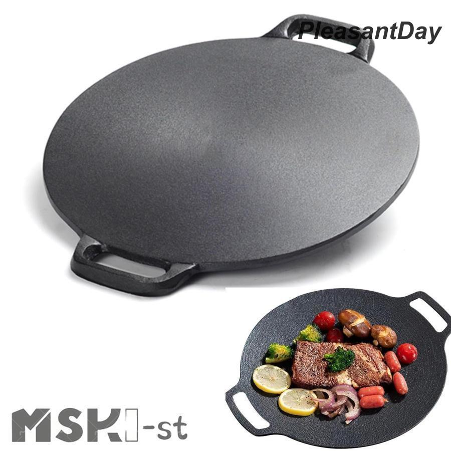 マルチグリドル グリルパン フライパン 直径28 30 32 34 38cm 鋳鉄 クレープパン 6mm極厚、バーベキュー 鉄板 丸形 焼き肉プレート 黒鉄パン グリル鍋 BBQ 家庭