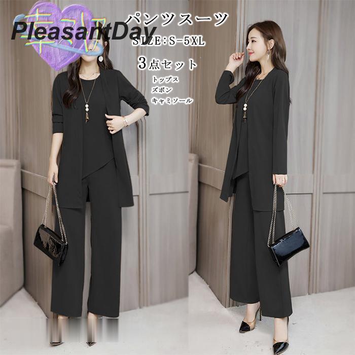 セットアップ パンツスーツ レディース 3点セット パンツドレス フォーマル ロングパンツ 入学式 ママスーツ 長袖 大きいサイズ 結婚式 入学式 スーツ 卒業式