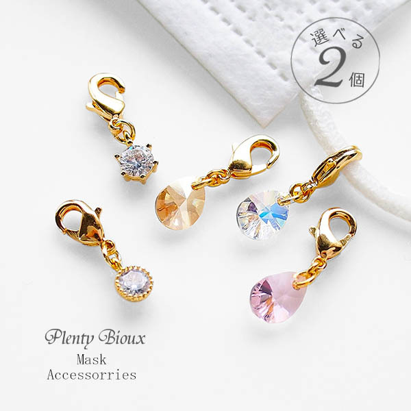 マスク アクセサリー チャーム ピアス フックタイプ スワロフスキー 涙型2個セット