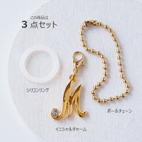 この商品は、イニシャルチャーム本体にボールチェーンとシリコンリングの3点セットです。