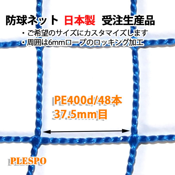 防球ネット 野球 テニス 37.5mm目 400d/48本 ブルー 日本製 受注生産品