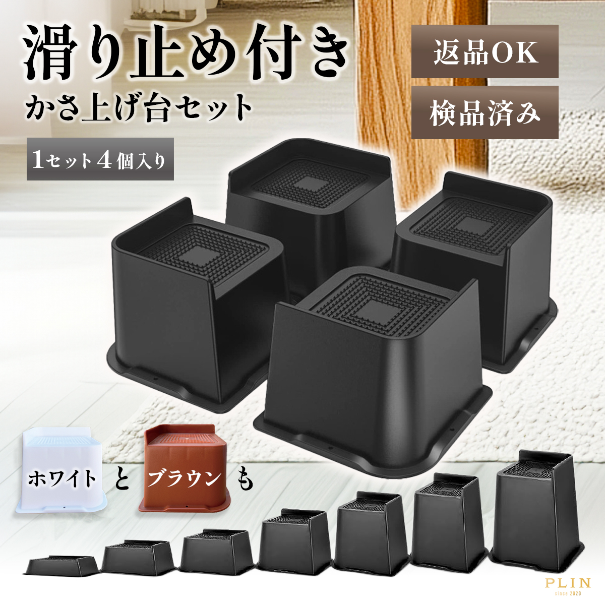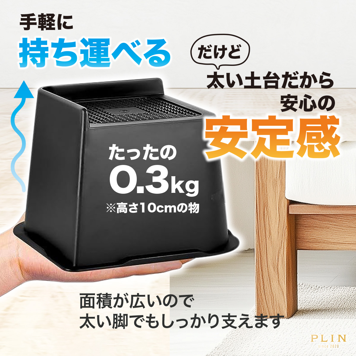 テーブル・椅子・ベッド・ソファなどの脚に設置するだけで、高さを手軽に調整できます。姿勢の改善やベッド下収納スペースの確保に。