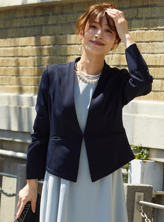 同色のフレアパンツドレスとセットできちんと感アップ♪ ⇒セットアップパンツドレス