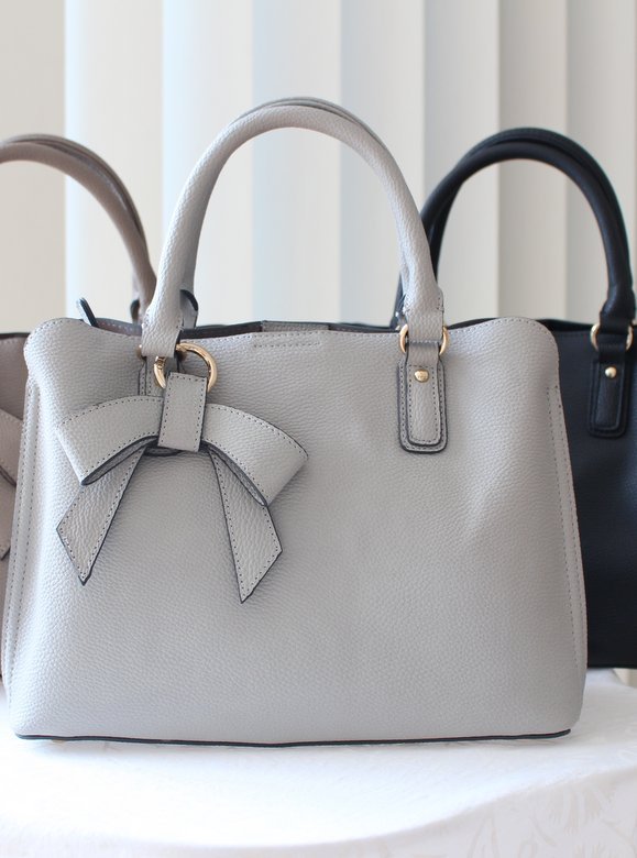 シンプルなトートバッグに彩りを加えるリボンモチーフ。