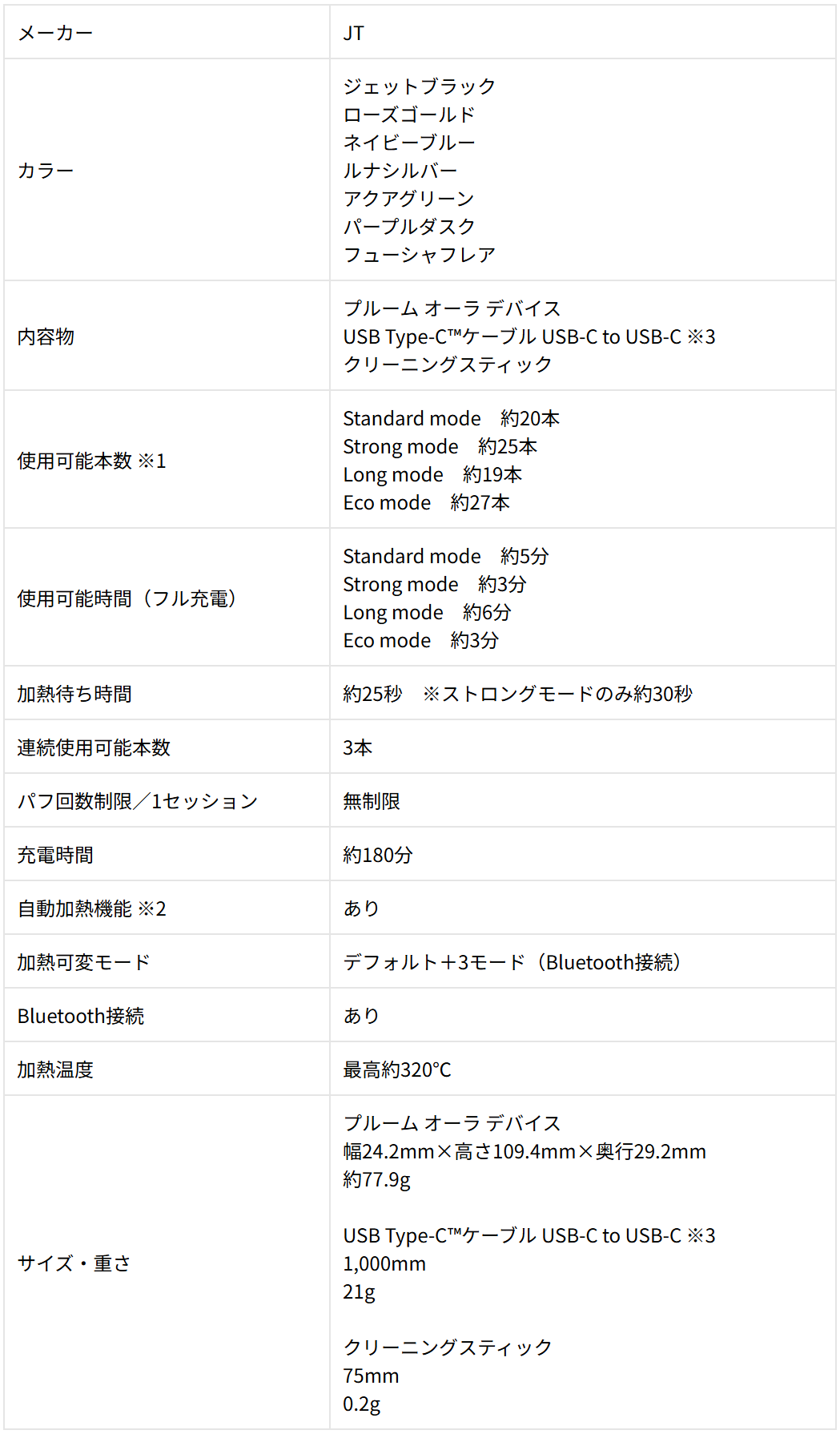 ※1 プルーム ACアダプターを使用した場合。バッテリーの劣化や環境温度により充電時間や使用可能本数は増減する可能性があります。