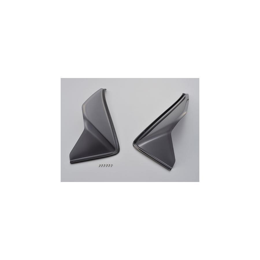 スポーティーなエアロ形状フォルムのサイドバイザー左右セット。耐衝撃アクリル製(2mm厚)を使用。走行時に足に当たる風を抑制し寒さと疲労を軽減するアイテム。MADE IN JAPAN。