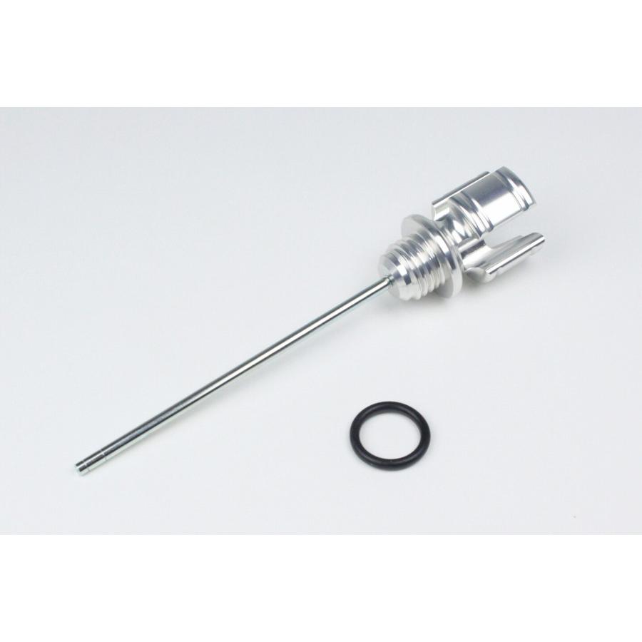 アルミを大胆に削り込み、存在感と指先での回しやすさを両立したオイルレベルゲージです。
