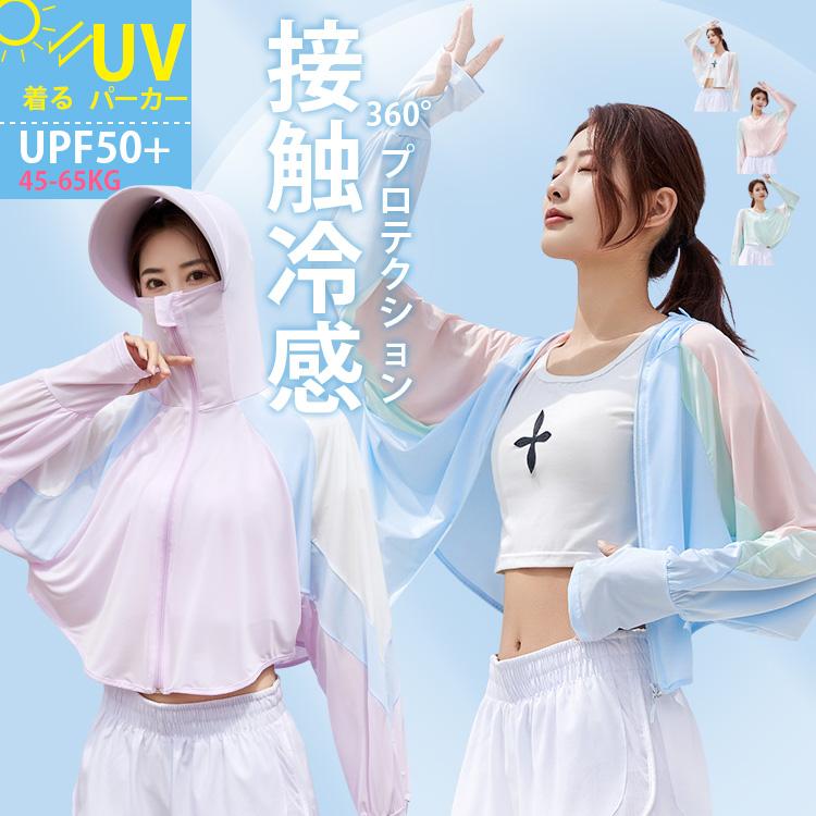 ラッシュガード レディース パーカー 長袖 指穴付き 日焼け止め フェイスガード 速乾 涼しい 冷感 フード付き スポーツ アウトドア 紫外線対策 体型カバー