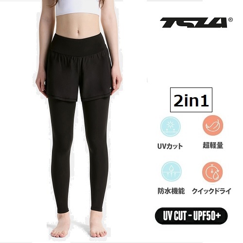 水陸両用 ショートパンツ付きレギンス レディース用 2in1 UPF50+ 速乾 伸縮性 スイムパンツ ラッシュガード一体型 スイムウェア テスラ TSLA FSB50 爆買