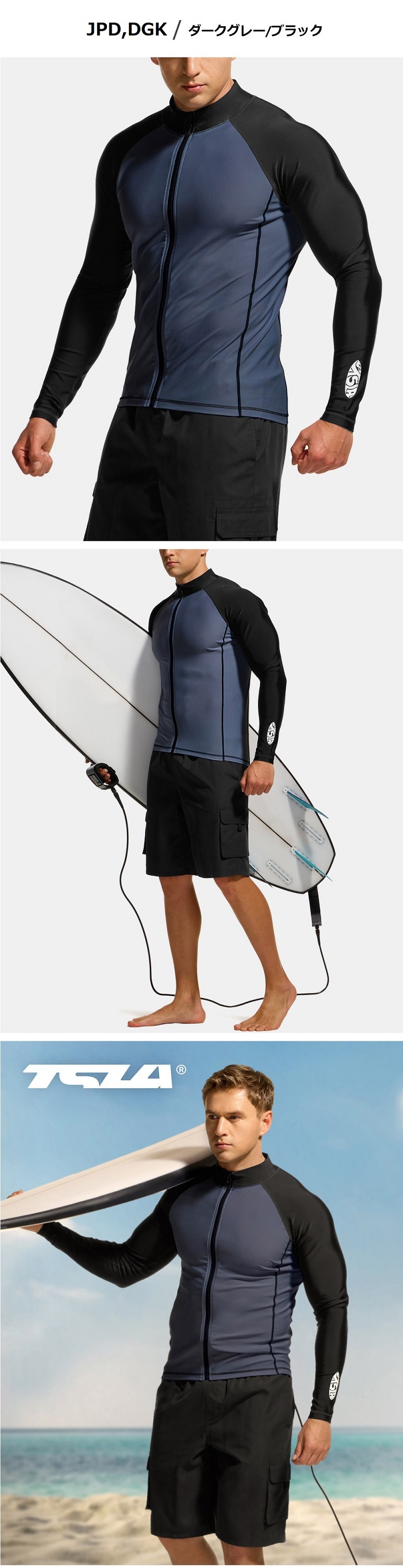 ラッシュガード メンズ 長袖 フルジップ 水着 UVカット UPF50+ 吸汗速乾 伸縮性 メンズ ジップパーカー ラッシュパーカー 1サイズ ダウン テスラ MSZ01/02 爆買