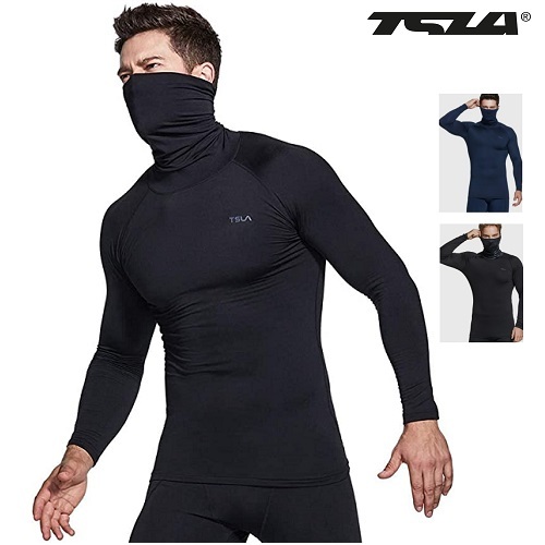 テスラ コンプレッションインナー 裏起毛 フェイスカバー付き コンプレッションウェア メンズ 長袖 上 アンダーシャツ 冬用 インナー シャツ TSLA YUT57 爆買