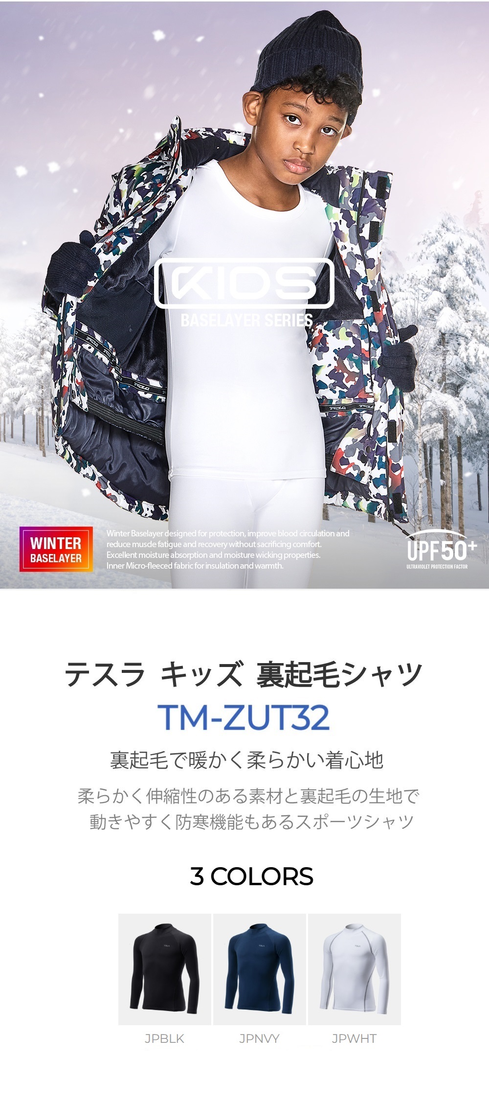テスラ コンプレッションウェア キッズ 裏起毛 シャツ 秋 冬用 長袖 防寒 ハイネックシャツ サッカー インナー スポーツインナー ジュニア TSLA ZUT32 爆買
