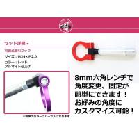 | ■商品説明 穴空け加工無しで取付可能です。 容易な取り付け作業で充分な強度! 実用性、ドレスアップ効果を兼ね備えております。 ★フックサイズ★ 長さ 約27mm 全長 約215mm フック内径 約50mm リングの向きを変えられます。 装着したままでも折りたたんで、車両全長をはみ出さない限り車検対応となります。 |