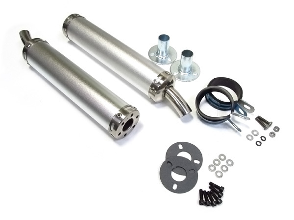| ■商品説明 ホンダ アルミサイレンサー マフラー 左右2個セット 交換・補修・修理にオススメの商品です! ▼仕様 全長:約355mm 外径:約60mm 取付け部内径:約25mm 出口径:約21mm |