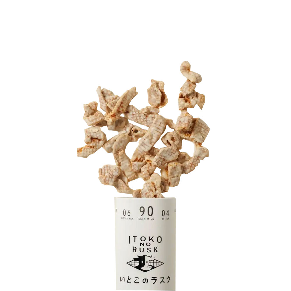 バターのいとこをつくる時に出る、おいしい生地の端っこをこんがりと焼き上げたお菓子「いとこのラスク」“素材の恵みを余すことなく食べてもらいたい”という作り手の想いが込められて誕生しました。コクのあるホワイトチョコをまとったラスクの味が後を引く季節限定のホワイトチョコラスクです。