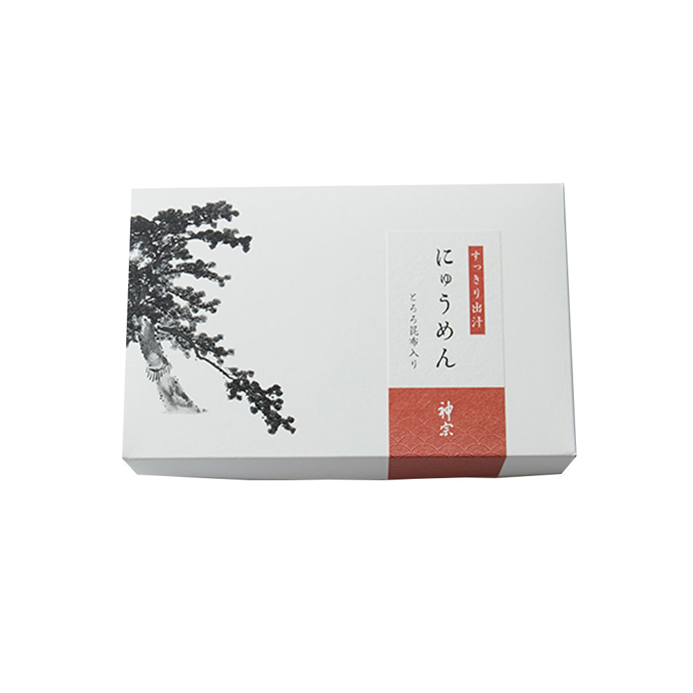 麺とだしパックを一緒に2分煮込むだけ。鍋1つで出来る、本格的な出汁で味わう神宗の即席にゅうめんです。だしには天然真昆布とかつお本枯節を使用。お吸い物のように、すっきりとして雑味のない、まろやかで上品な味わいです。国産長ねぎを石垣島で乾燥させ、旨みや甘みを凝縮させた自社特製乾燥ねぎと、北海道産天然昆布100%のとろろ昆布を添えました。お好みで、すだち果汁や粉山椒をかけてお楽しみください。天然素材のうま味たっぷりで最後までだしを飲み干せる、他にはない神宗こだわりの一品です。内容 :108g(【だしパック】16g、【めん】45g、【特製つゆ】38g、【とろろ昆布】2g、【乾燥ねぎ】1g、【すだち果汁】5?、【粉山椒】1袋)