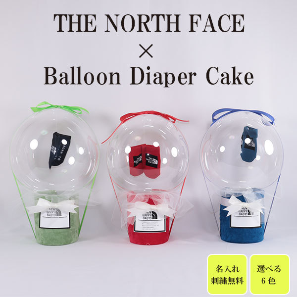 おむつケーキ 出産祝い ノースフェイス バルーン 選べる 6色 名入れ刺繍 ダイパーケーキ 誕生日祝い ベビーシャワー