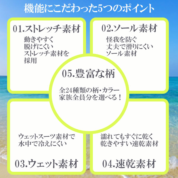 24種類の鮮やかな柄と13種類のサイズ展開で、大人から子供まで幅広くご利用いただけます。これぞ、マリンスポーツやアウトドア愛好家のための最高の選択肢です!