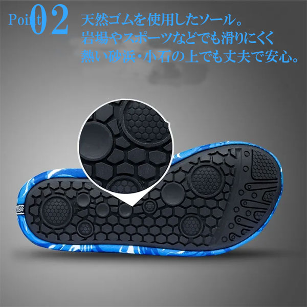 当商品の特徴は、丈夫なソールにあります。どんな状況でも、足元をしっかりと守ります。砂浜での歩行や川岸の探検、岩場でのアクティビティなど、あらゆる場所でご使用いただけます。
