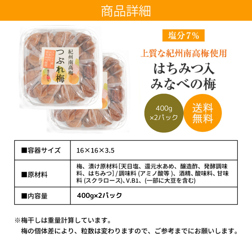 梅干し 400g×2 フランス産はちみつ使用 つぶれ梅 送料無料(北海道・沖縄 送料700円) 紀州南高梅 訳あり梅干し はちみつ梅 はちみつ梅干し