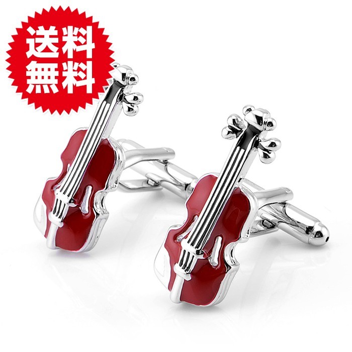 1組 バイオリン型 カフスボタン メンズ カフス カフリンクス シルバー シンプル ビジネス 冠婚葬祭 結婚式 音楽会 パーティー
