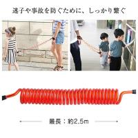 飛び出し等の事故防止、迷子防止用の伸縮ひもです。手首にセットすれば、お子様が動き回ってもはぐれず安心!紐の付け根部分は360度回転するので、お子様が動き回っても手首への負担は心配ありません。最大250cmまで伸びるので、広い場所でも安心して遊べます。
