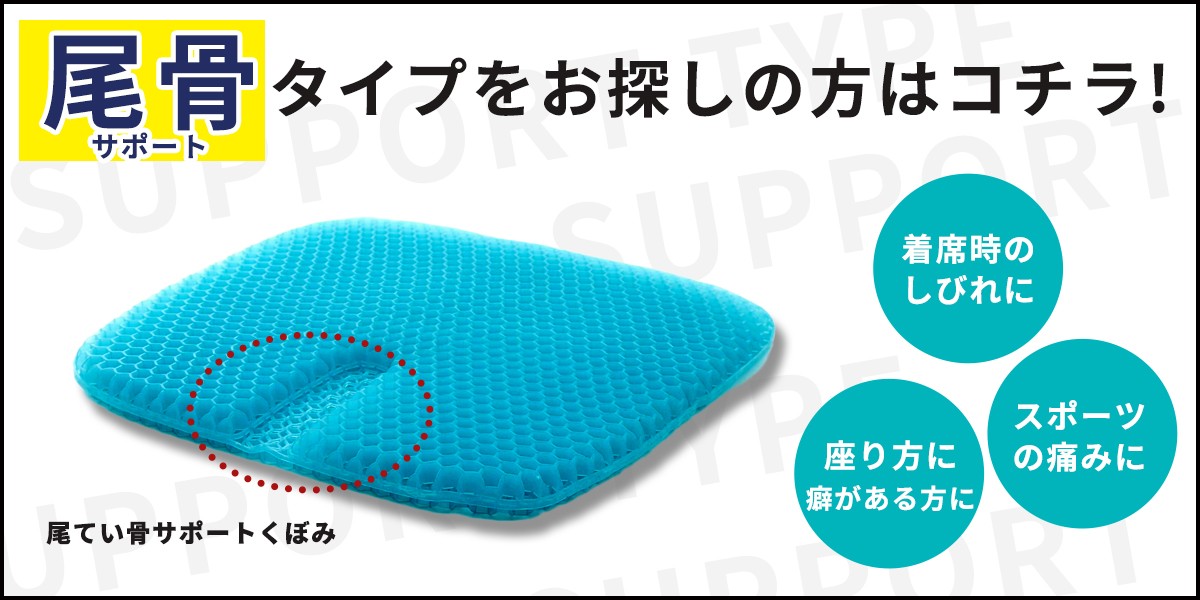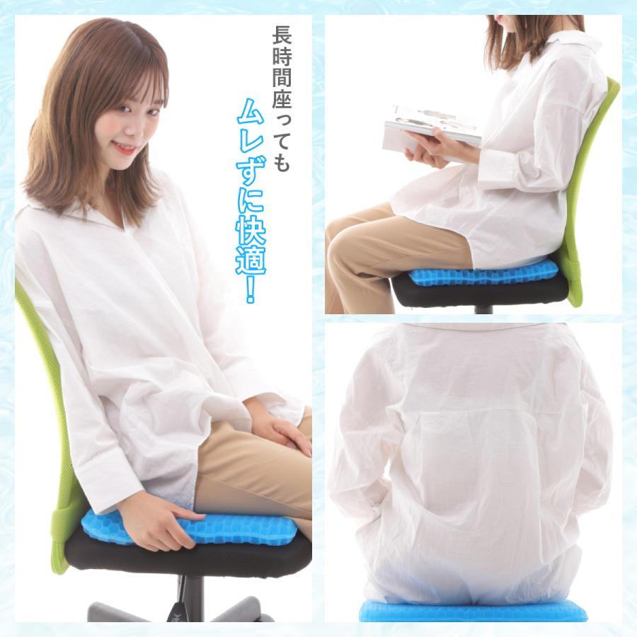 臀部を包み込むように柔らかく支えるゲル素材を使用、座り心地バツグンのゲルクッション