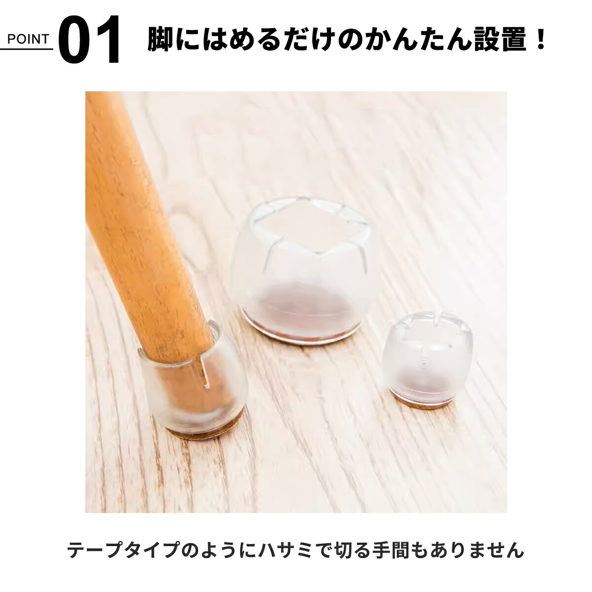 いすの足にはめるだけのかんたん設置!テープタイプのようにハサミで切る手間も不要!